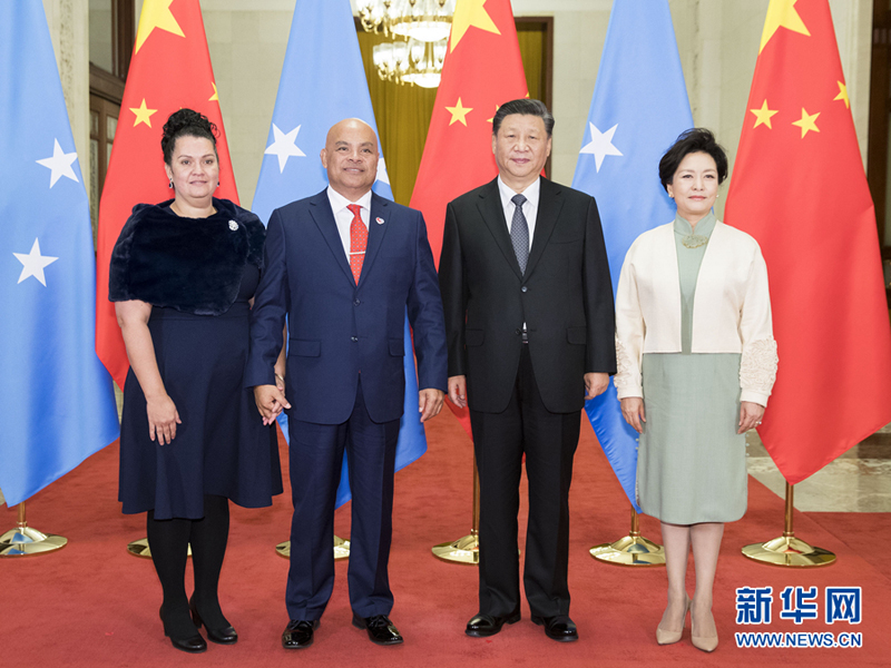 12月13日,國家主席習近平在北京人民大會堂同密克羅尼西亞聯邦總統帕努埃洛會談。這是會談前,習近平和夫人彭麗媛同帕努埃洛總統和埃德溫女士合影。 新華社記者 黃敬文 攝