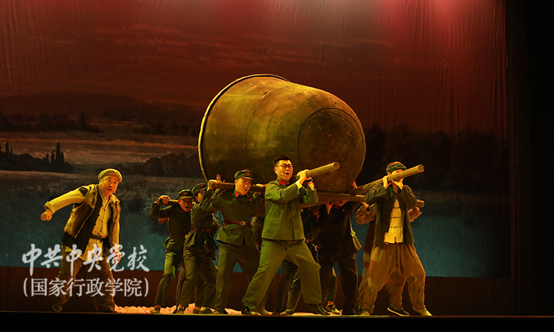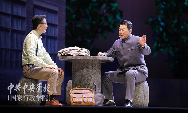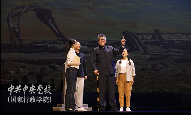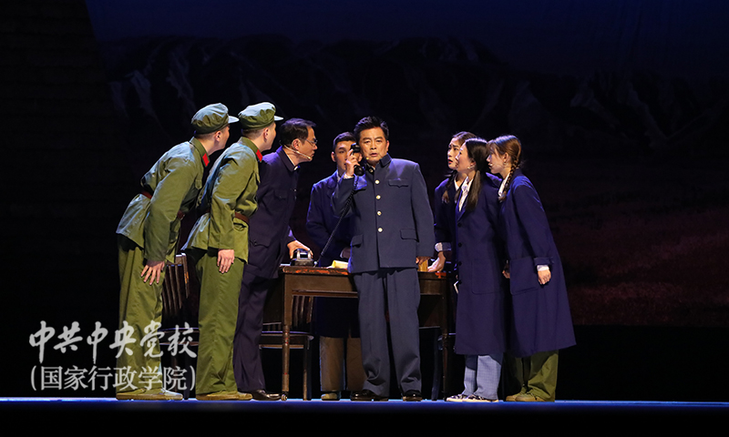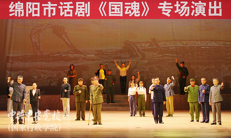 4月23日晚,以“弘揚(yáng)愛(ài)國(guó)奮斗精神、建功立業(yè)新時(shí)代”為主題的世界讀書(shū)日系列活動(dòng)之話劇《國(guó)魂》在中央黨校(國(guó)家行政學(xué)院)隆重上演。全國(guó)政協(xié)副主席、九三學(xué)社中央常務(wù)副主席邵鴻,中央黨校(國(guó)家行政學(xué)院)分管日常工作的副校(院)長(zhǎng)何毅亭,中央軍民融合辦副主任王樹(shù)年,中央黨校(國(guó)家行政學(xué)院)副校(院)長(zhǎng)王東京、李季、謝春濤,生態(tài)環(huán)境部副部長(zhǎng)、九三學(xué)社中央副主席、九三學(xué)社四川省主委黃潤(rùn)秋,中共四川省委常委、組織部部長(zhǎng)、四川省委黨校校長(zhǎng)王正譜,中國(guó)工程院院士張信威,中國(guó)科學(xué)院院士孫昌璞,綿陽(yáng)市委書(shū)記劉超,張愛(ài)萍長(zhǎng)孫,部分“兩彈一星”功勛人物的親屬,以及校(院)各直屬單位負(fù)責(zé)同志、全體學(xué)員約2000人觀看了演出。