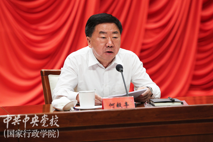 何毅亭指出,中央黨校(國家行政學院)要按照中央精神,牢牢把握“守初心、擔使命,找差距、抓落實”這一總要求,牢牢把握深入學習貫徹習近平新時代中國特色社會主義思想、錘煉忠誠干凈擔當的政治品格這一總任務。他說,黨中央明確規(guī)定中央黨校(國家行政學院)是黨中央直屬單位,也就是說是黨中央直接管理的學校,“姓黨”是校(院)最鮮明的政治底色。我們要通過這次主題教育,使全校黨員干部進一步牢固樹立黨校姓黨意識,把做到“兩個維護”作為校(院)建設第一位的政治要求來貫徹,把堅持黨校姓黨作為衡量校(院)工作質量和成效的根本準繩來把握,切實使主題教育成為一次思想的再洗禮、一次初心的再覺醒、一次使命的再升華、一次忠誠的再淬煉。