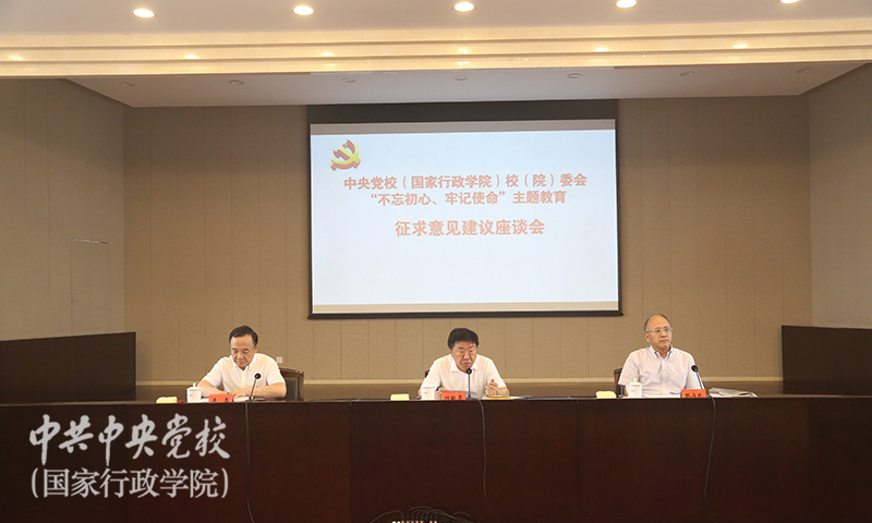 6月19日,中央黨校(國家行政學院)校(院)委會召開“不忘初心、牢記使命”主題教育征求學員和教職工代表意見建議座談會,深入開展調查研究。分管日常工作的副校(院)長何毅亭主持會議并作總結講話。副校(院)長甄占民、李季出席會議。中央紀委國家監委駐中央組織部紀檢監察組第一紀檢監察室主任黃欽陽同志到會指導。