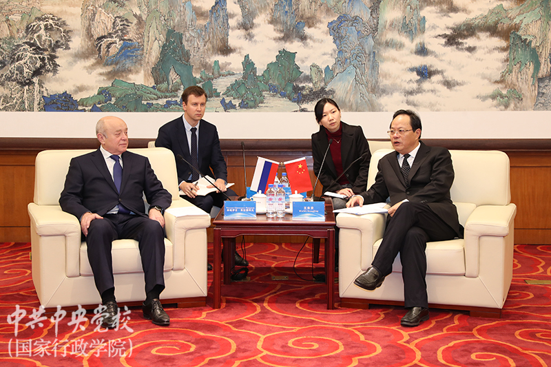 王東京首先對(duì)弗拉德科夫、杰尼索夫一行來(lái)校(院)訪問(wèn)表示歡迎,并簡(jiǎn)要介紹了校(院)情況,回顧了校(院)與俄羅斯在干部教育培訓(xùn)和研究領(lǐng)域的交流與合作。他表示,希望雙方能以此次訪問(wèn)為契機(jī),共同探討未來(lái)開(kāi)展多種形式的務(wù)實(shí)交流與合作,為中俄兩國(guó)加強(qiáng)人員往來(lái)和人文交流做出積極貢獻(xiàn),為新時(shí)代中俄全面戰(zhàn)略協(xié)作伙伴關(guān)系發(fā)展不斷取得新成果貢獻(xiàn)力量。