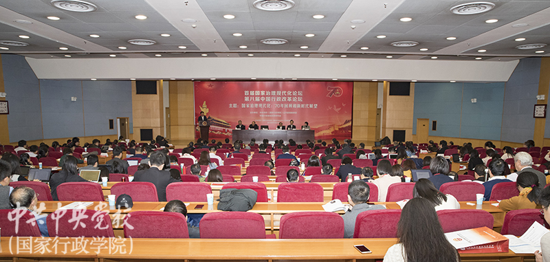 11月24日,中央黨校(國家行政學(xué)院)公共管理教研部、中國行政體制改革研究會在北京成功舉辦首屆國家治理現(xiàn)代化論壇、第八屆中國行政改革論壇,論壇主題為“國家治理現(xiàn)代化:70年回顧和新時代展望”。中央黨校(國家行政學(xué)院)分管日常工作的副校(院)長何毅亭出席論壇并致辭。中國國際經(jīng)濟交流中心副理事長、重慶市人民政府原市長黃奇帆,中國行政體制改革研究會會長、原國家行政學(xué)院副院長楊克勤,中國機構(gòu)編制管理研究會會長、中央編辦原副主任王峰,中國招投標(biāo)協(xié)會會長、國家發(fā)改委原副秘書長任瓏發(fā)表主旨演講。中國行政體制改革研究會學(xué)術(shù)委員會主任、執(zhí)行局主席魏禮群主持論壇開幕式及主旨演講。