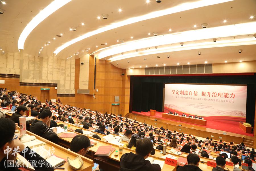 12月7日,由中央黨校(國家行政學(xué)院)習(xí)近平新時(shí)代中國特色社會(huì)主義思想研究中心、中央黨校(國家行政學(xué)院)馬克思主義學(xué)院、中央黨校(國家行政學(xué)院)培訓(xùn)部與中國馬克思主義研究基金會(huì)共同舉辦的“第十一屆中國特色社會(huì)主義論壇暨中國馬克思主義論壇2019”在中央黨校(國家行政學(xué)院)隆重召開。本次論壇聚焦學(xué)習(xí)貫徹黨的十九屆四中全會(huì)精神,主題為“堅(jiān)定制度自信,提升治理能力”。來自中央黨校(國家行政學(xué)院)、中央黨史和文獻(xiàn)研究院、中國社會(huì)科學(xué)院、北京大學(xué)等單位的專家學(xué)者,中央黨校(國家行政學(xué)院)部分在校學(xué)員、教師和研究生,以及地方黨校、全國高校馬克思主義學(xué)院代表,約500人參加了論壇。