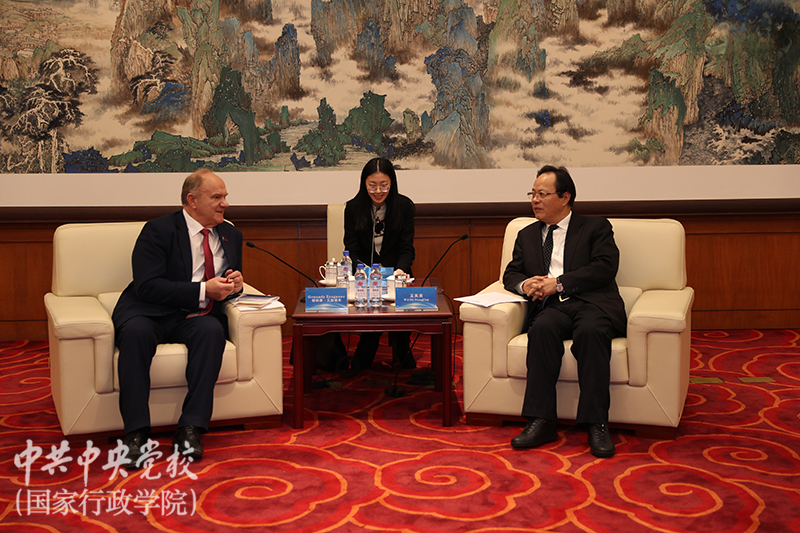 王東京首先對久加諾夫一行來校訪問表示歡迎,簡要介紹了我校最新情況,并回顧了我校與俄羅斯聯邦共產黨交流情況。他表示,我校愿同俄方共同努力,落實好兩國元首達成的有關共識,推動雙方就政黨建設等議題開展多種形式的務實交流與合作,為雙邊關系發展和各領域合作建言獻策。