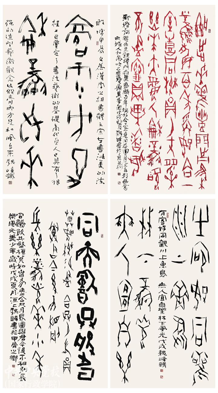 《中華基因——紀(jì)念甲骨文發(fā)現(xiàn)120周年魏峰甲骨文書法藝術(shù)展》是中央黨校(國家行政學(xué)院)2019年收官之展,由校(院)圖書和文化館、中央文史研究館書畫院、河南安陽殷墟管理處聯(lián)合主辦。國務(wù)院參事室文史業(yè)務(wù)司司長耿識博,北京工藝美術(shù)出版社社長陳高潮等領(lǐng)導(dǎo)和嘉賓,校(院)部分直屬單位負(fù)責(zé)同志參加了開展式。本次展覽展期為2019年12月30日至2020年1月15日。
