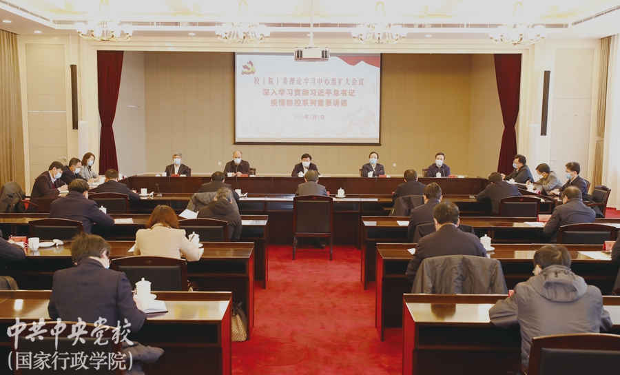 中央黨校(國家行政學院)3月5日召開校(院)委會理論學習中心組擴大會議,深入學習貫徹習近平總書記關于新冠肺炎疫情防控系列重要講話精神,對繼續扎扎實實做好疫情防控工作和校(院)常態工作提出要求。校(院)委會成員,秘書長、副教育長、副秘書長,各直屬單位主要負責人等近50人參加會議,中央紀委國家監委駐中央組織部紀檢監察組副組長羅興平等應邀出席會議。