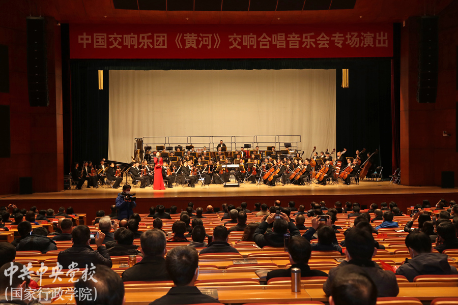 12月6日晚,中央黨校(國家行政學(xué)院)禮堂歌聲嘹亮、氣氛熱烈,由中央黨校(國家行政學(xué)院)與文化和旅游部共同主辦的中國交響樂團(tuán)《黃河》交響合唱音樂會(huì)在這里傾情奏響。中央黨校(國家行政學(xué)院)副校(院)長李季、謝春濤,中國交響樂團(tuán)黨委書記馬俊英、黨委副書記兼副團(tuán)長鞏保江等領(lǐng)導(dǎo)和嘉賓以及在校全體學(xué)員觀看了演出。