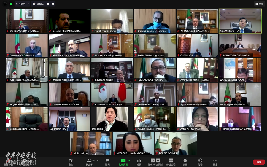12月8日下午,中央黨校(國家行政學院)與阿爾及利亞內政、地方行政與土地整治部(下稱“阿內政部”)共同主辦、湖北省委黨校(湖北省行政學院)協辦的“地方政府在抗擊新冠肺炎疫情中的作用:中國的經驗”線上研討會成功召開。中央黨校(國家行政學院)副校(院)長甄占民、阿內政部秘書長蒙吉、中國駐阿爾及利亞大使李連和出席并致辭。