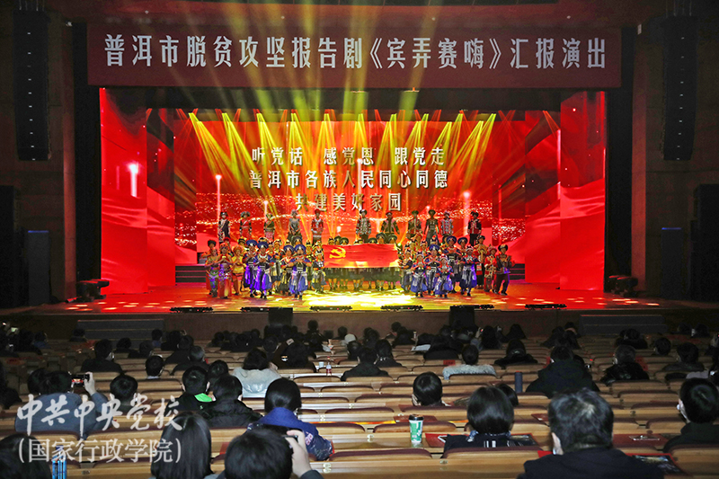 12月20日,由云南省普洱市創作的脫貧攻堅報告劇《賓弄賽嗨》在中央黨校(國家行政學院)北校區禮堂演出。分管日常工作的副校(院)長何毅亭,副校(院)長甄占民、李季、李毅、謝春濤,中國農業銀行行長張青松,國家開發銀行副行長周清玉,以及駐京有關定點幫扶單位代表、全體在校學員一同觀看演出。