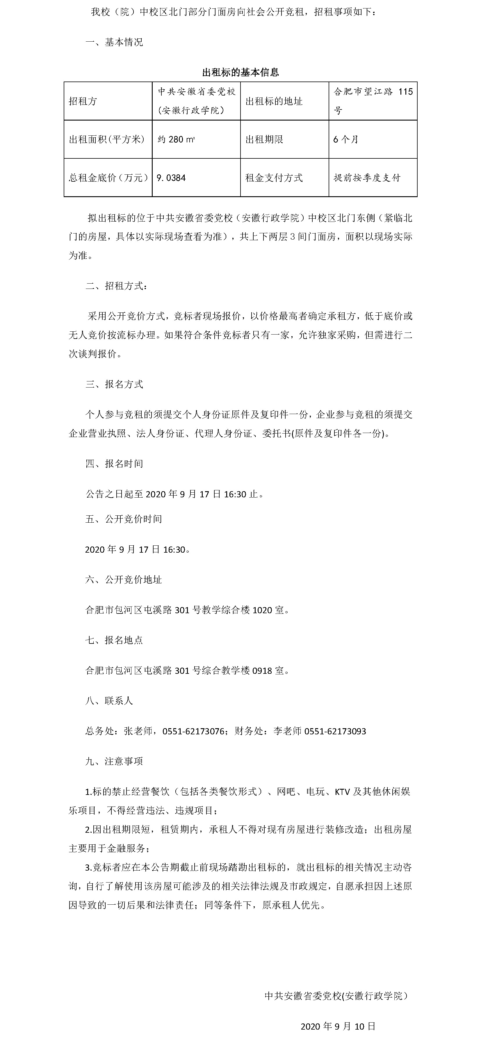 中校區北門部分門面房公開競租公告