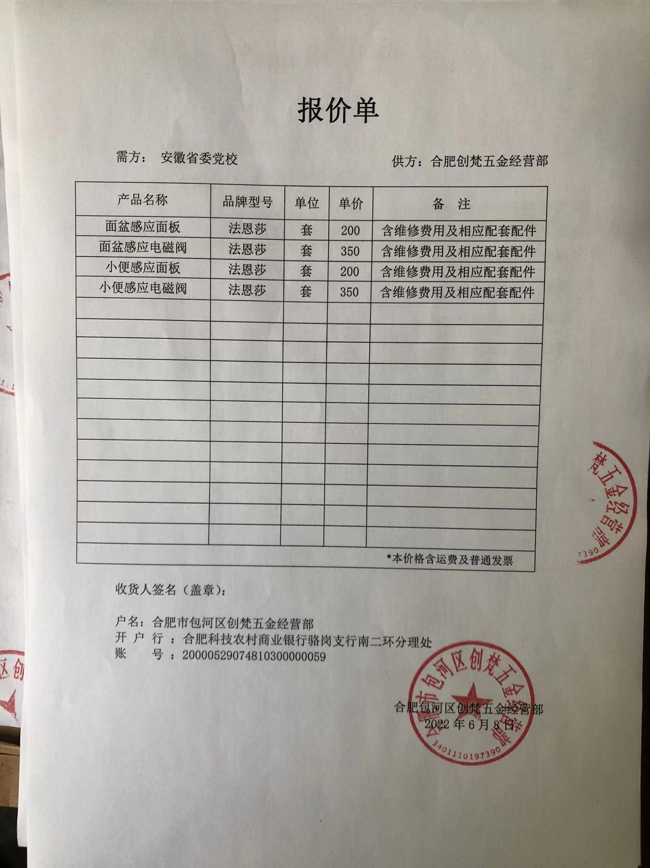 中共安徽省委黨校(安徽行政學(xué))潔具維修采購項(xiàng)目于2022年6月14日下午17:00開標(biāo)。中標(biāo)供應(yīng)商為合肥市包河區(qū)創(chuàng)梵五金經(jīng)營(yíng)部,現(xiàn)予以公告,公告期為2022年6月15日至2022年6月17日。