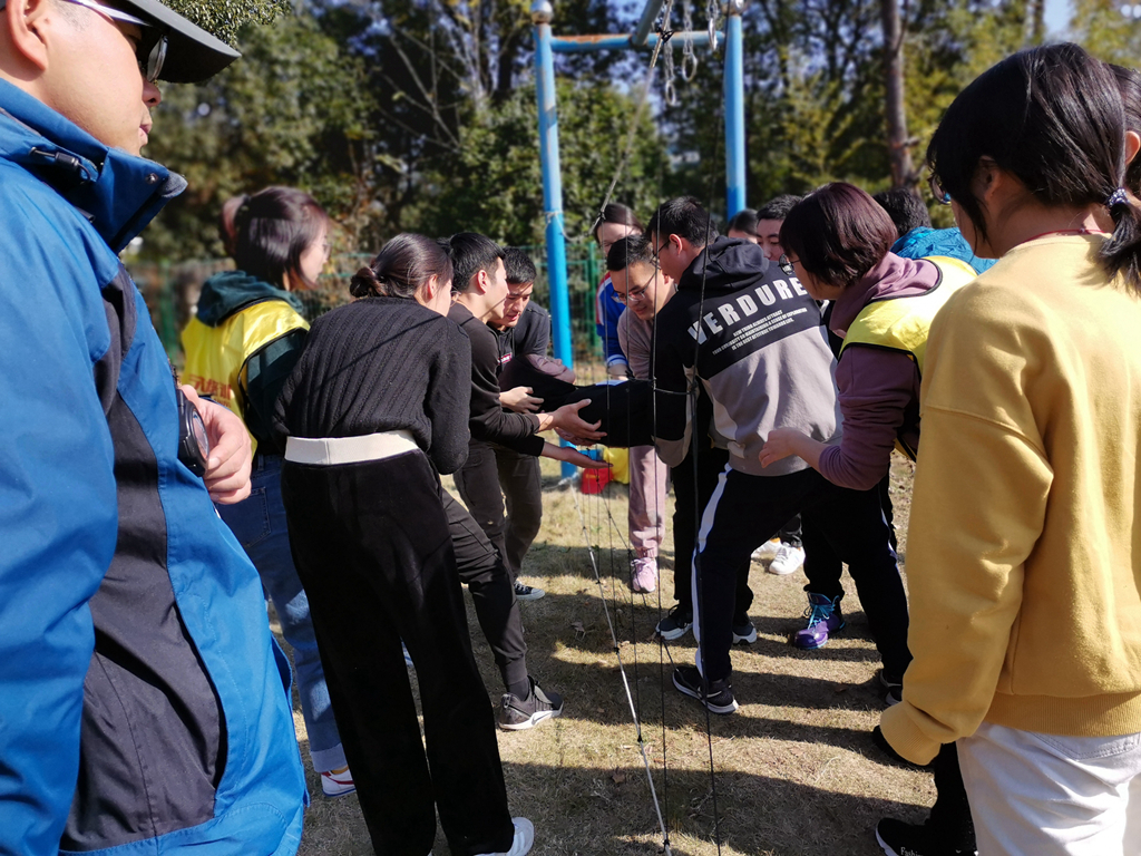 此次拓展訓練在破冰活動中拉開序幕。破冰后組成的八個小組挑戰了巧渡硫酸河、挑戰150、高空挑戰、生死電網、萬里長城等項目。在高空挑戰項目中,帶著超越自我的強烈渴望,在隊友的鼓勵中,每個隊員都攀到頂點,勇敢飛躍。隨著巧渡硫酸河、穿越電網兩個項目的哨聲吹響,團隊迅速集結,集思廣益,最終挑戰了一個個的不可能。挑戰150項目中,無論是默契配合的管道運輸,眾志成城的擊鼓顛球還是全神貫注的不倒森林,都蘊含著團隊的包容、信任和鼓勵。各小組成員積極參與,相互配合,齊心協力,充分展現出新時代選調生的良好風貌。現場充滿了歡聲笑語,加油吶喊聲更是不絕于耳。