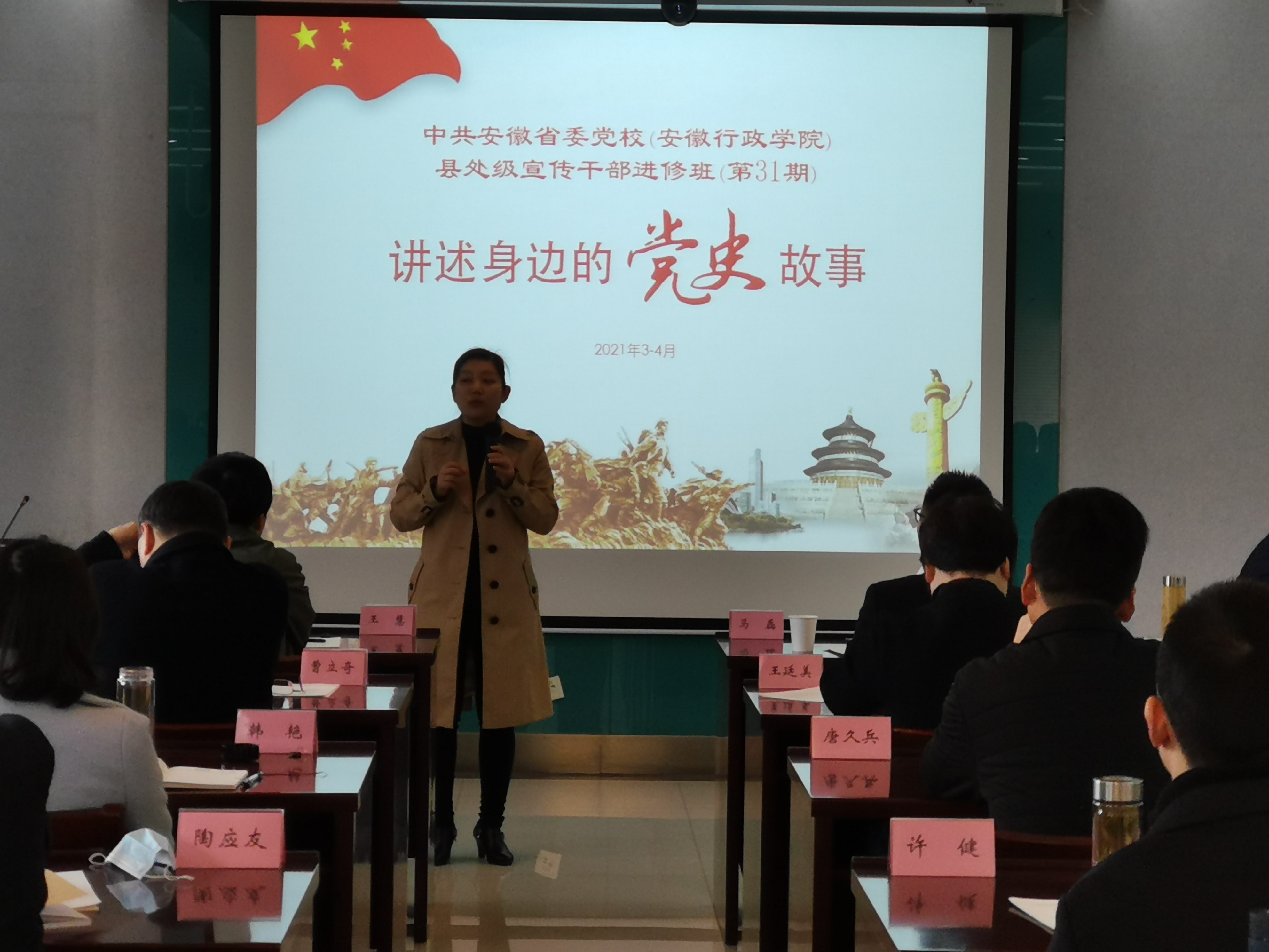 “張愛(ài)萍三進(jìn)石相村”“軍民連心葉挺橋”“河燈照亮窮人心”……每天上課前,一個(gè)個(gè)感人的黨史小故事在學(xué)員口中娓娓道來(lái),省委黨校(安徽行政學(xué)院)第31期宣干班的全體學(xué)員仿佛也跟隨講述者一起,徜徉在中國(guó)共產(chǎn)黨建立100年來(lái)的輝煌歷史長(zhǎng)河中。