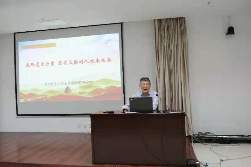 5月26日上午,巢湖學院黨委副書記阮愛民同志以《汲取黨史力量 落實立德樹人根本任務》為題,在分享所在高校開展黨史學習、思政教育、育人育才等創新做法的同時,啟發大家要掌握黨史學習教育重點,用習近平新時代中國特色社會主義思想培根鑄魂。