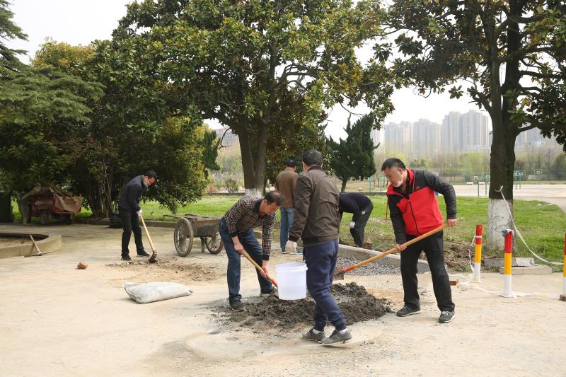同時后勤人員還自己動手對行政樓前破損路面進行修復。(孫明攝影)
