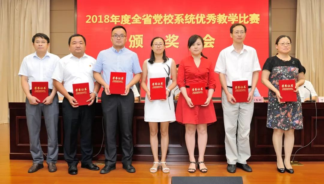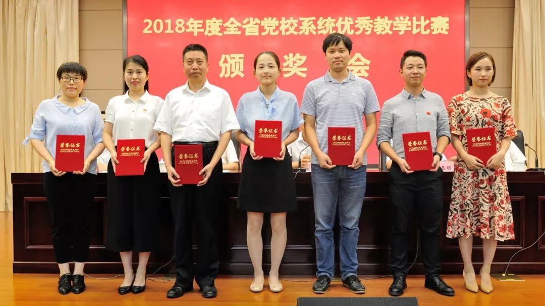 比賽結(jié)束后,省委黨校舉行了2018年度全省黨校系統(tǒng)優(yōu)秀教學(xué)比賽頒獎會。校領(lǐng)導(dǎo)張永、鄧玉明、胡忠明、丁毅和省委組織部干教處處長王林武出席會議,并為獲獎教師頒獎。