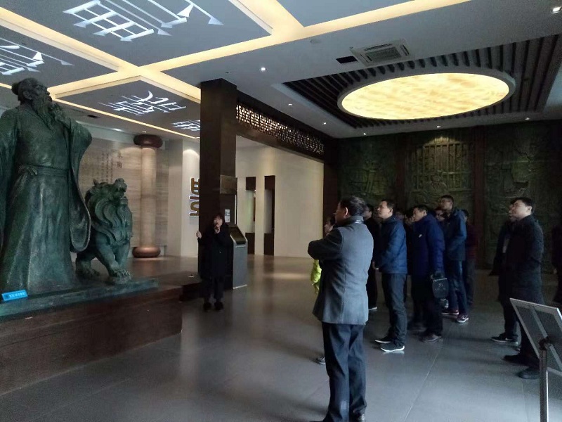 皋陶五禮園通過雕塑、仿古器具、圖片以及影像資料等組合,并運用聲光電等多種現代化多媒體互動手段,使學員們詳細學習了“司法鼻祖”皋陶的“吉、壽、賓、軍、嘉”五禮文化核心內容與精髓,深刻領會了皋陶“法治”與“德教”相融的思想精華。
