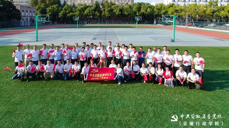 “我和我的祖國,一刻也不能分割,無論我走到哪里,都流出一首贊歌……”拍攝當天,中央黨校在職研究生2018級(安徽班)全體學員按照分組,從省委黨校(安徽行政學院)中校區大門、教室、圖書館、報告廳等地匯聚到國旗下,揮動起手中的小國旗,一同放聲高歌《我和我的祖國》。現場氣氛歡快熱烈,深情的歌唱表達了學員們對祖國的熱愛之情和美好祝福。在操場,學員們拼出“70”圖案,匯聚成一幅動人畫卷,慶祝中華人民共和國成立70周年,體現了學員們對祖國最深沉的愛。