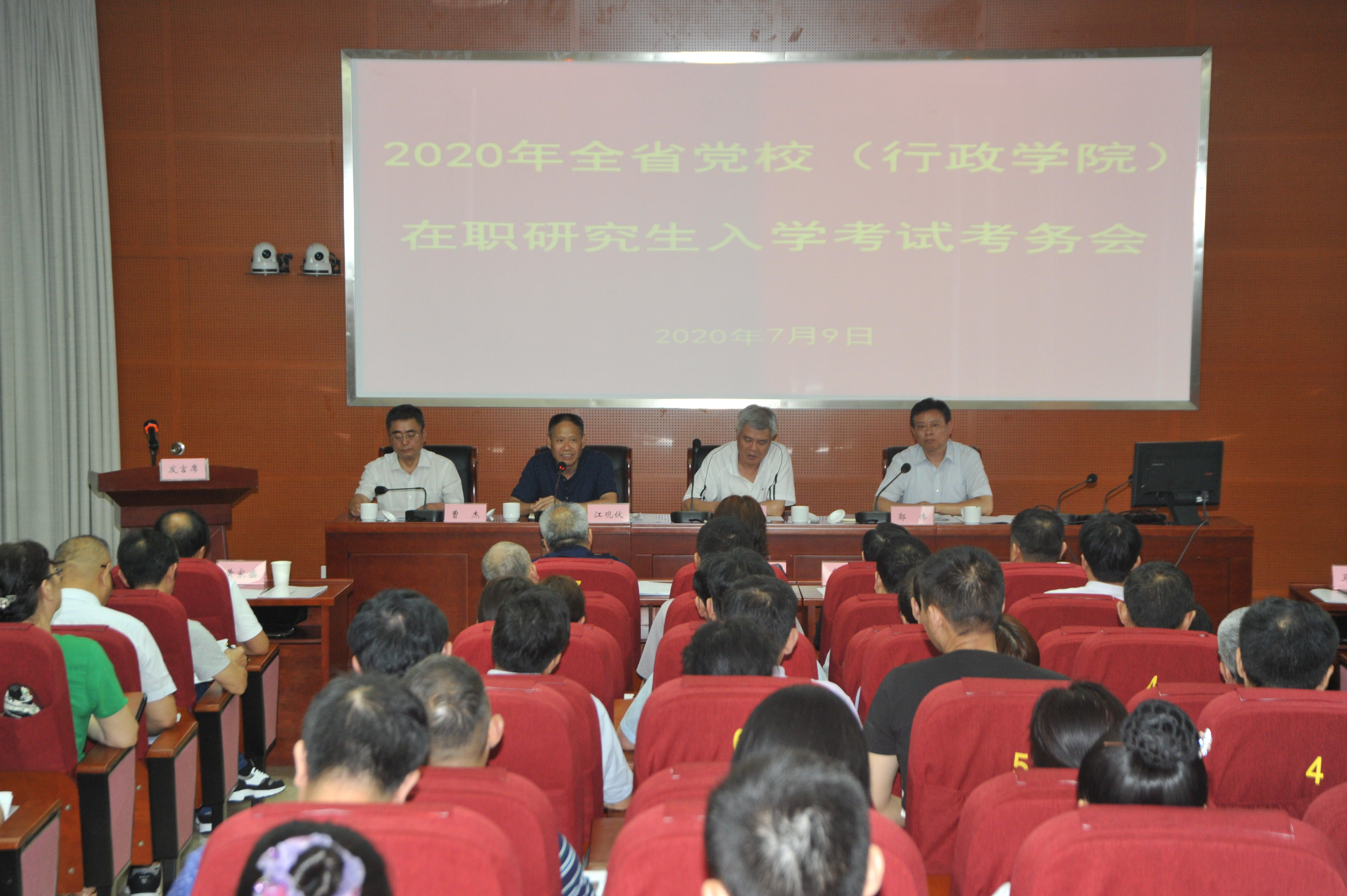 7月9日下午,省委黨校(安徽行政學院)召開2020年在職研究生入學考試考務會,副校(院)長江觀伙出席會議并講話。副教育長袁林生,各省轄市委黨校和省直工委黨校分管研究生教育校領導和研辦負責人,省委黨校(安徽行政學院)赴教學點主考人員、校本部監考人員及有關處室負責人參加會議。