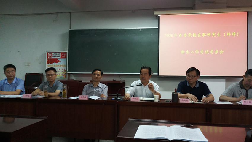 蚌埠黨校校委高度重視本次研究生入學考試考務工作,專門成立了由常務副校長李安東任組長的考試領導小組和防疫防控領導小組,在7月10日下午召開研究生入學考試考務工作和防疫防控工作培訓會議,傳達全省黨校系統研究生入學考試考務會議精神,對本次入學考試的組織領導、疫情防控、時間安排、考場布置、工作流程等方面做了精心布置與安排。