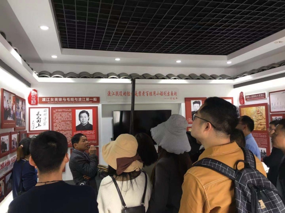 參觀紀(jì)念渡江戰(zhàn)役展廳,重溫革命歷史,緬懷革命先烈。面對鮮艷的中國共產(chǎn)黨黨旗,全體黨員集體重溫入黨誓詞,鏗鏘有力的宣誓聲,表達了傳承紅色基因、矢志不渝奮斗的堅定決心。隨后,大家走進展廳,仔細(xì)觀看展覽,一幅幅圖片,一件件實物,把大家?guī)Щ氐綉?zhàn)火紛飛的革命年代,學(xué)員們不時駐足,認(rèn)真觀展,了解有關(guān)情況。渡江戰(zhàn)役中,年僅14歲的馬毛姐冒著敵人的密集炮火,護送解放軍過江,途中遭敵軍炮擊負(fù)傷仍堅持撐船,首批抵達文興洲東風(fēng)泡(今屬胥壩鄉(xiāng)群心村),她的渡船被譽為“渡江第一船”。在“渡江英雄馬毛姐與渡江第一船”展板前,大家駐足良久,深刻領(lǐng)會習(xí)近平總書記“渡江戰(zhàn)役的勝利是靠老百姓用小船劃出來的”這一重要論述。