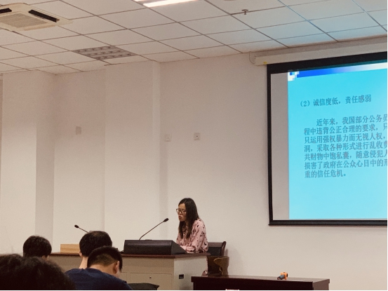 2021年5月29日,省委黨校在職研究生(宿州教學點)公共管理學授課老師黃亞萍,利用本課程最后一個課時的時間,選取2020級公共管理班兩名同學,采取“角色互換”的方式為學員授課。班黨支部組織委員任璐與學習班委趙勝男同學通過精心準備,利用各自準備的PPT分別為同學們講授《公共管理學》第十三章:公共管理倫理。任璐同學講解了倫理與公共管理倫理的定義與關(guān)系,公共管理倫理的思考方式和類型等相關(guān)知識點,用詞詼諧、生動,充分帶動了課堂氛圍。趙勝男同學針對公務(wù)員職業(yè)倫理這一課題為大家進行了講授,多數(shù)學員為新入職不久的公務(wù)員,這個課題作為公告管理倫理的一部分而單獨作為一個課題來講授,不僅使大家對這職業(yè)倫理這個概念獲得了深層次的了解,也收獲了警醒和教育的意義。