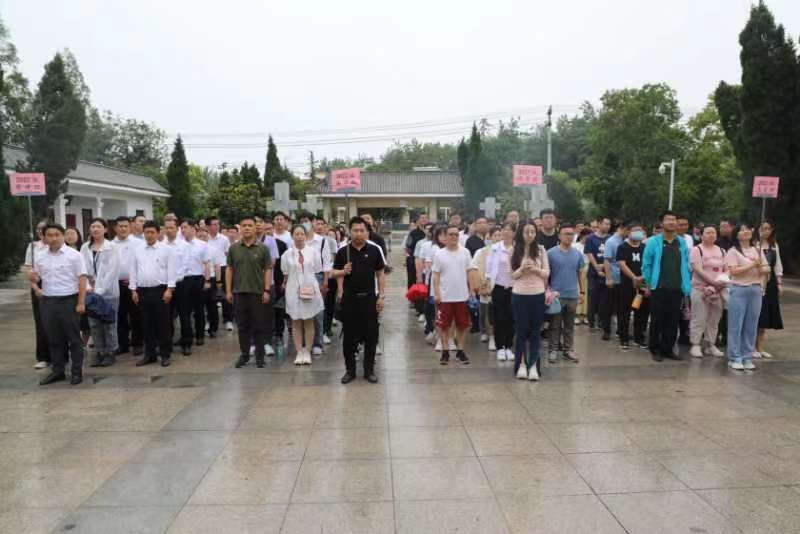 蒼松翠柏映襯先烈不屈忠魂,綿綿細雨寄托后人無限哀思。在烈士陵園,師生們雨中整齊列隊,面向紀念碑莊嚴肅立,懷著無比崇敬的心情向革命先烈敬獻花籃、鞠躬行禮,并齊唱國歌、重溫入黨誓詞。